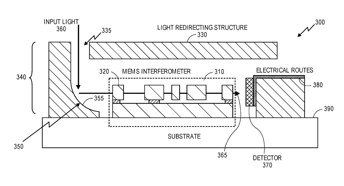 Aspects of the disclosure relate to an Integrated spectral unit including a micro- electro-mechanical systems (MEMS) interferometer fabricated within a first substrate arid a light redirecting structure- integrated on a second substrate, where the second substrate is coupled to the first substrate. The light redirecting structure includes at least one mirror for receiving an input light beam propagating in an out-of-plane direction with, respect to the first substrate and redirecting the input light beam to an in-plane direction with respect to the first substrate towards the MEMS interferometer.